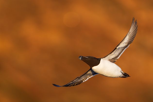 Wir treffen uns nachmittags in Bodø und nach einer Kennenlern-Runde geht es auf die Fähre nach Røst. Schon auf der Fahrt nach Røst haben wir die Chance, diverse Vogelarten zu entdecken. Seeadler, verschiedene Möwenarten und besonders Eissturmvögel sind häufig zu beobachten. Je näher wir uns dem Inselarchipel Røst nähern, umso mehr Papageitaucher und Tordalke werden wir zudem entdecken können. Bietet es uns das Wetter an, werden wir uns unter der Mitternachtssonne ein erstes Mal der Vogelfotografie widmen und suchen auf der Hauptinsel Røsts nach Odinshünchen und Raubmöwen. Auch die Dreizehenmöwen im Hafen bieten eine gute Möglichkeit, um verschiedene Aufnahmetechniken auszuprobieren und zu üben. Dazu gehören beispielsweise Mitzieher mit sehr langsamen Verschlusszeiten, um mehr Dynamik ins Bild zu bringen.