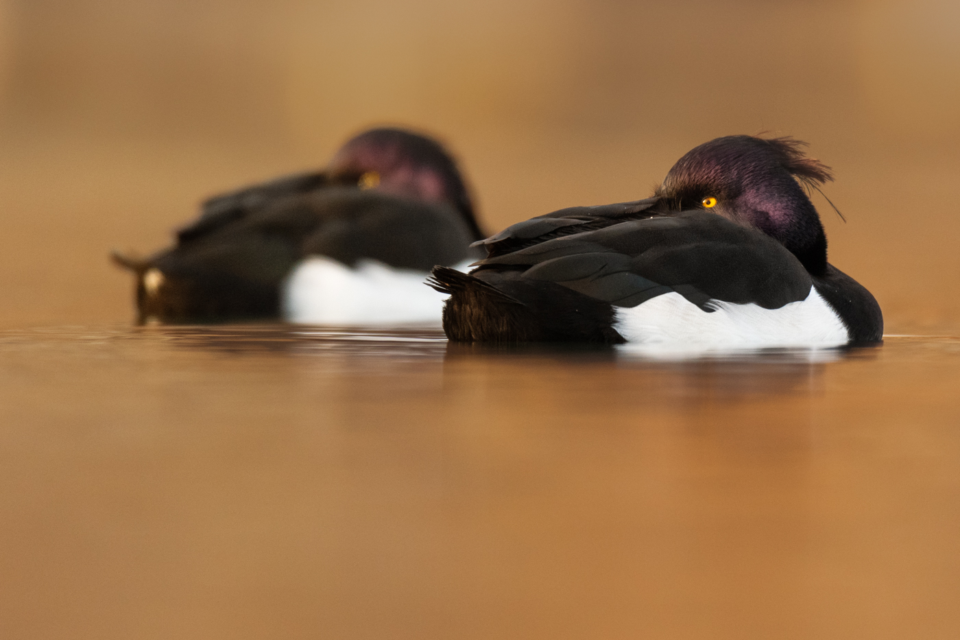 Wir treffen uns am frühen Nachmittag am ersten Standort, wo wir uns vom Ufer aus einen guten Überblick über die grösseren Sandbänke des Untersees verschaffen können. Hier überwintern eine grosse Menge an Gründelenten und auch Höcker-, Sing- und Zwergschwan sind hier oftmals zu sehen. Die Distanzen sind hier oftmals eher am weiteren Ende, weshalb wir uns hier auch mal mit Mitziehern und anderen experimentellen Aufnahmemöglichkeiten befassen können. Weiter haben wir hier auch genügend Zeit, um diverse Fragen zu Belichtungseinstellungen und Technik zu klären.Im Anschluss geht es schliesslich an die zweite Location, wo wir in Hafennähe, diverse Tauch- und Gründelenten fotografieren können. Auch Möwen nutzen den Standort gerne und so können wir uns auch mit dem Fotografieren von Vögeln im Flug auseinandersetzen. Besonders toll: zeigt sich auch am Abend noch die Sonne verwandelt sich unser Hintergrund in eine wunderbar golden leuchtende Szenerie!