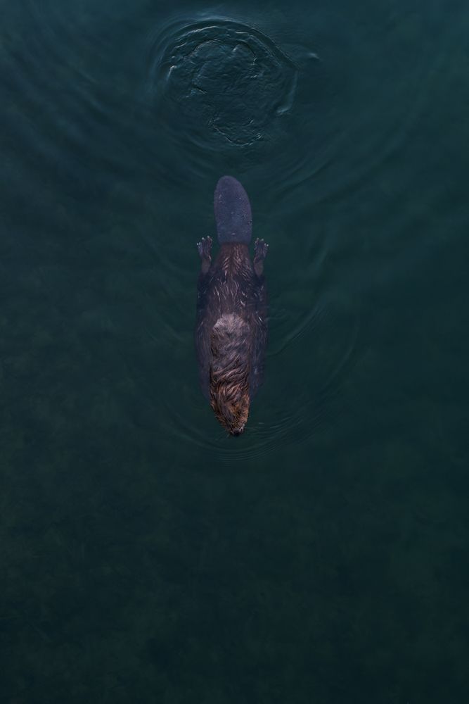 But since the light was already not optimal, I decided to quickly change the lens and take an image of the beaver from right above him. Luckily the concept worked out quite nicely.